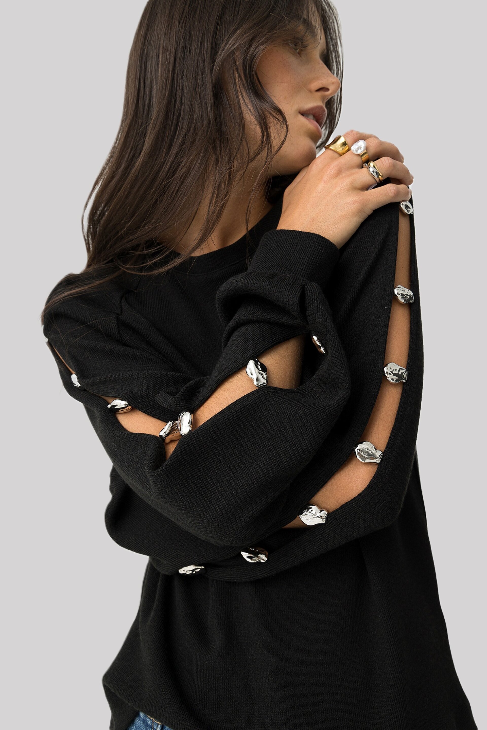Jersey Sage Abalorios Metálicos Negro