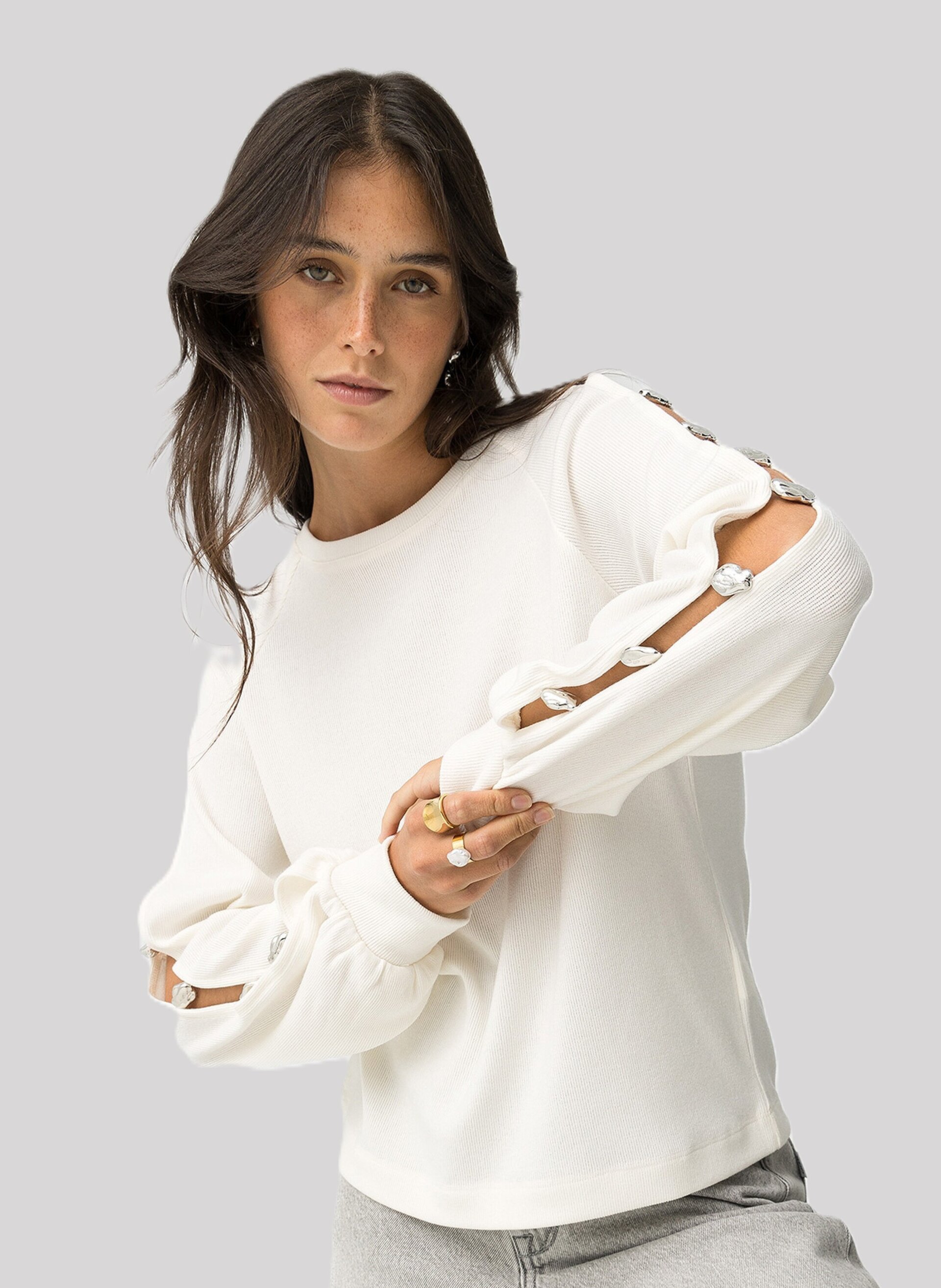 Jersey Sage Abalorios Metálicos Blanco