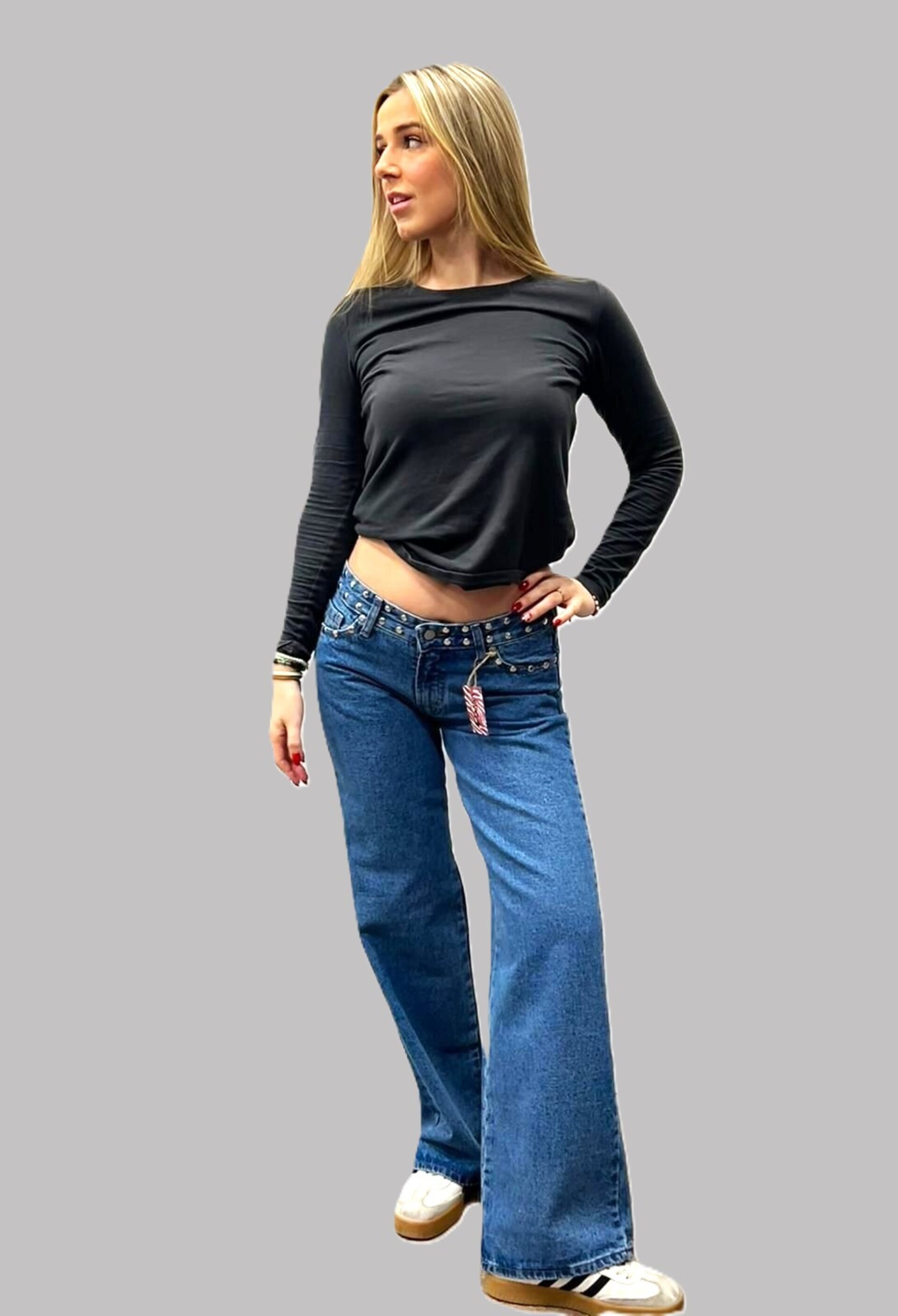 Jeans con tachuelas TIRO BAJO